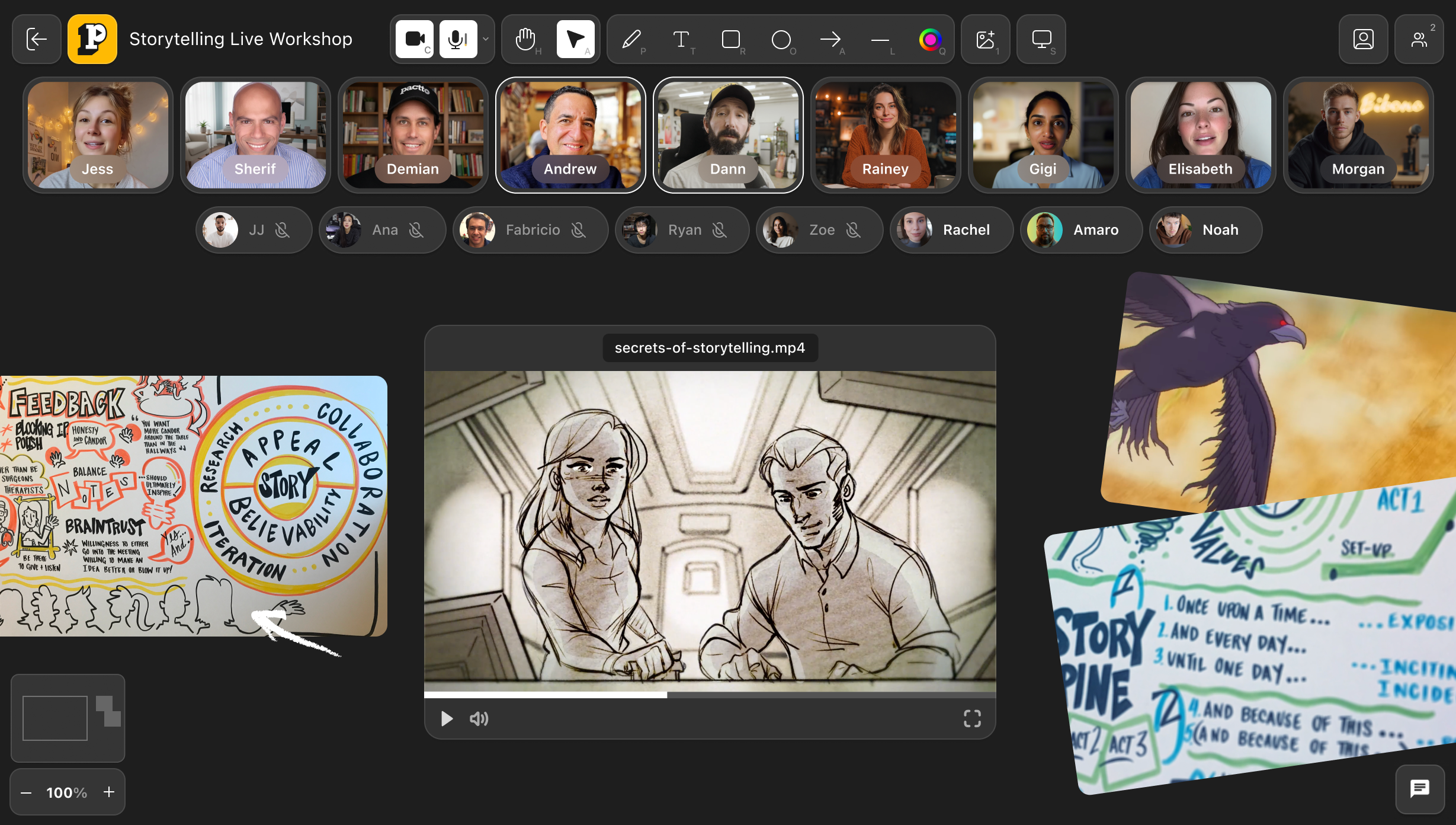 Throughout the sprint, Andrew and Demian drop into teams’ breakout rooms to provide guidance, unblock creative challenges, and ensure your story is on track. It’s an exhilarating creative rush, by the end, you have a rough but complete mini-film!