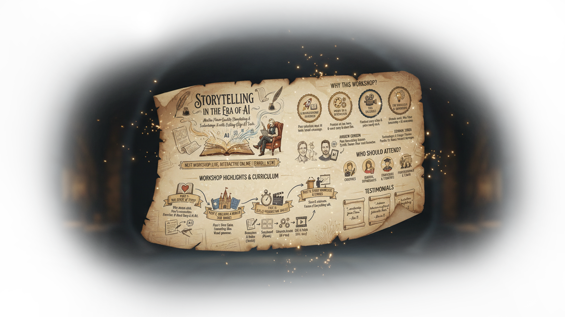 Learn the secrets that shape the best stories of our lifetime. From emotional hooks to creative processes to the AI tools that bring it to life, we’ll show you everything in a full day online live workshop.
